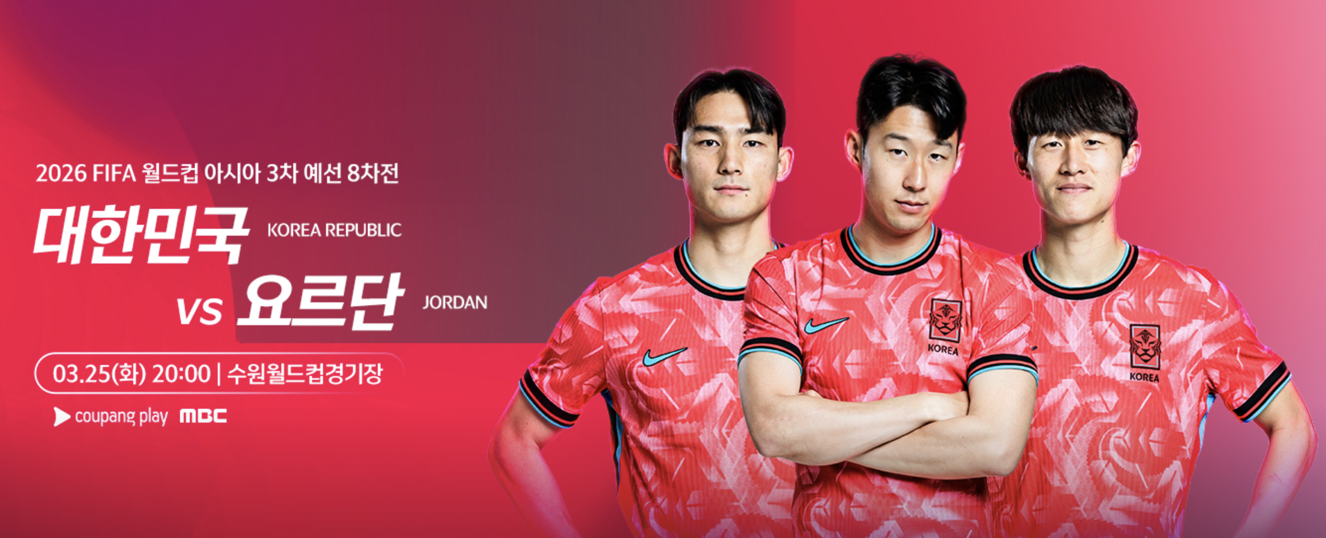 2025년 3월 25일 오후 8시, 수원월드컵경기장에서 대한민국 축구 국가대표팀과 요르단 대표팀이 2026년 FIFA 북중미 월드컵 아시아 지역 3차 예선 B조 8차전을 치릅니다.