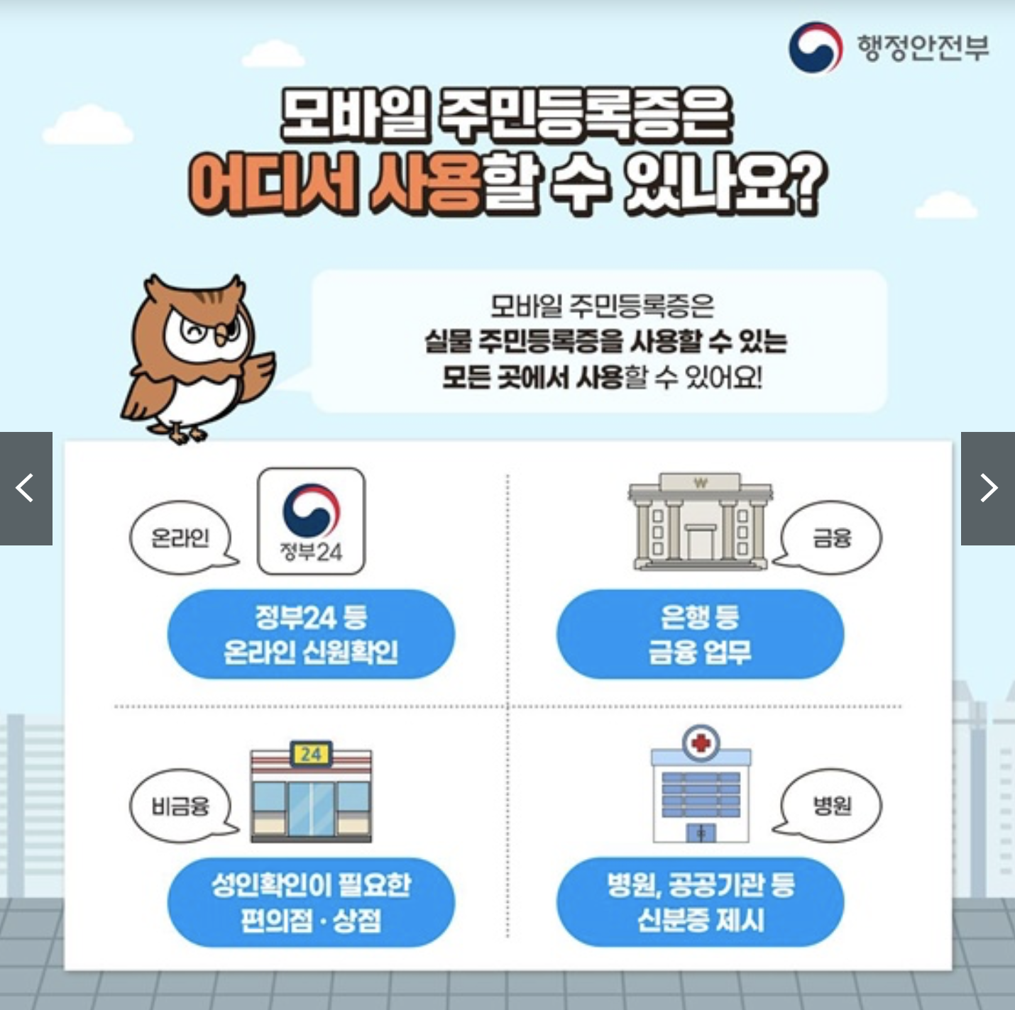 - 특징: 실물 주민등록증과 법적 효력 동일, 행정·금융·병원 등 폭넓은 사용